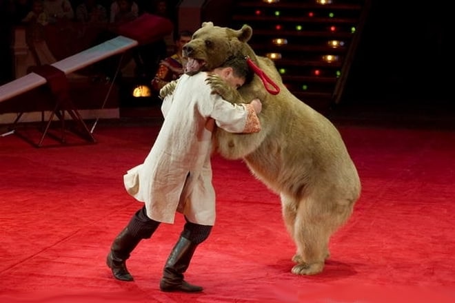 Я очень долго смеялся, глядя как этот чудик рассказывает про поединок с медведем:)